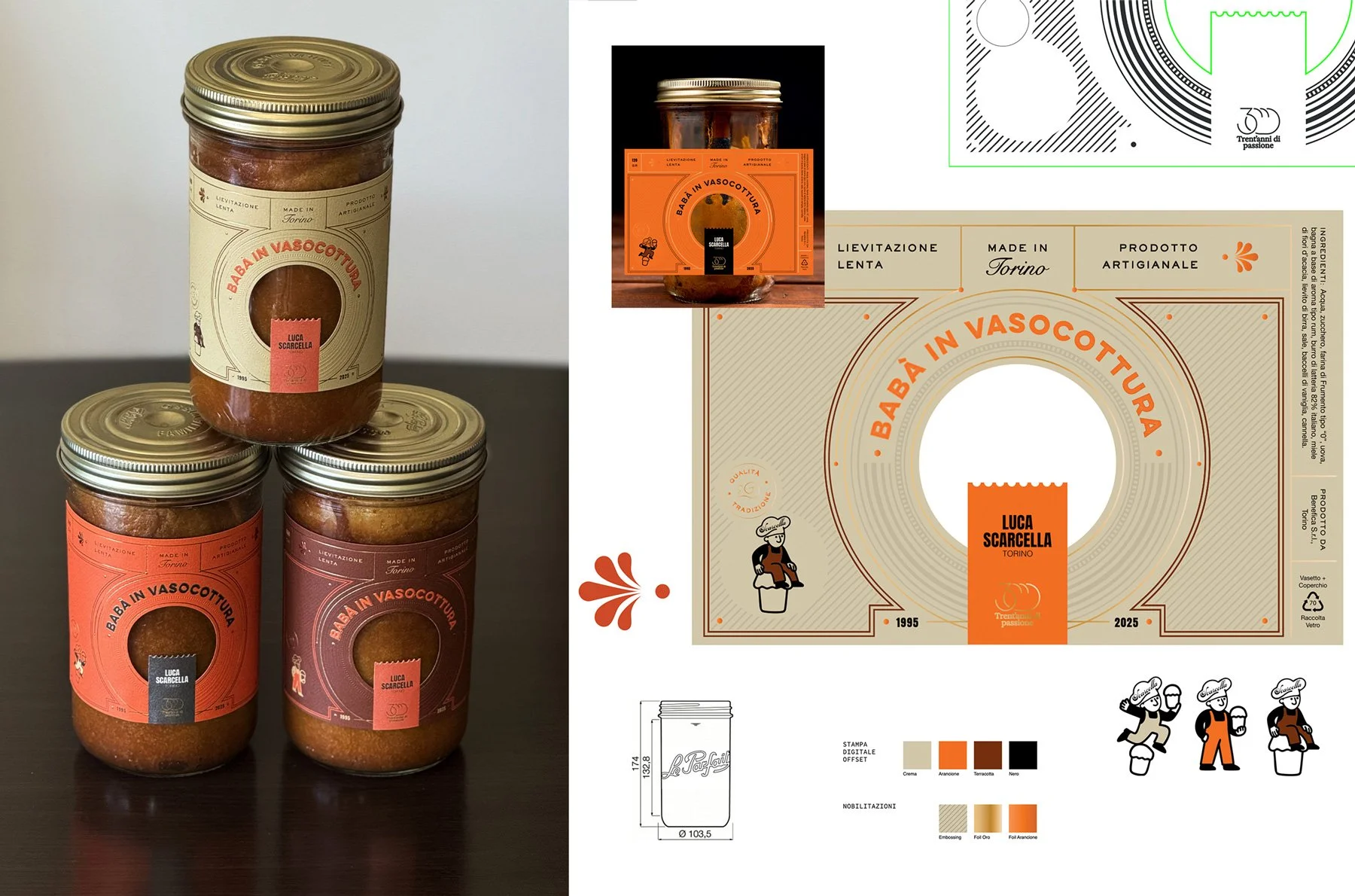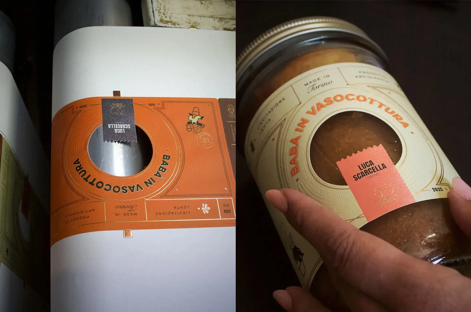 This year’s brief invited us to design a luxury adhesive label for master baker Luca Scarcella’s babà in vasocottura, a traditional Italian dessert, slow-baked in glass, that embodies time, mastery, and the poetry of waiting.